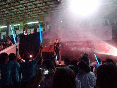 ~歌咏队和著名歌手包括大马偶像杰奎琳也在现场献唱,为通宵接力的参加者加油打气。~